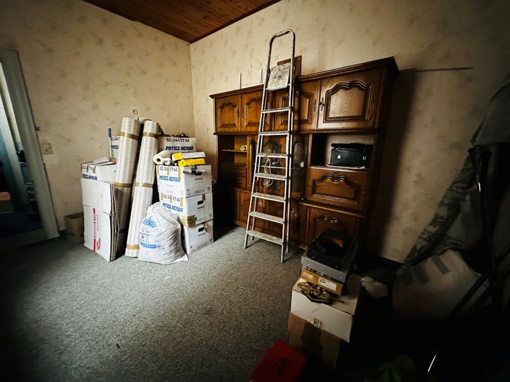 BEGANE GROND: 2 grote ruimtes, keuken en douche.