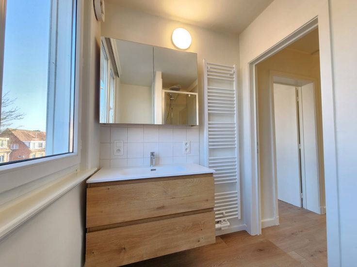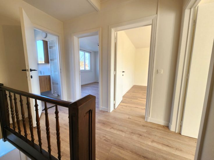 - Eerste verdieping: drie slaapkamers met mooie vloeren en een moderne badkamer (douche, wastafel en toilet).