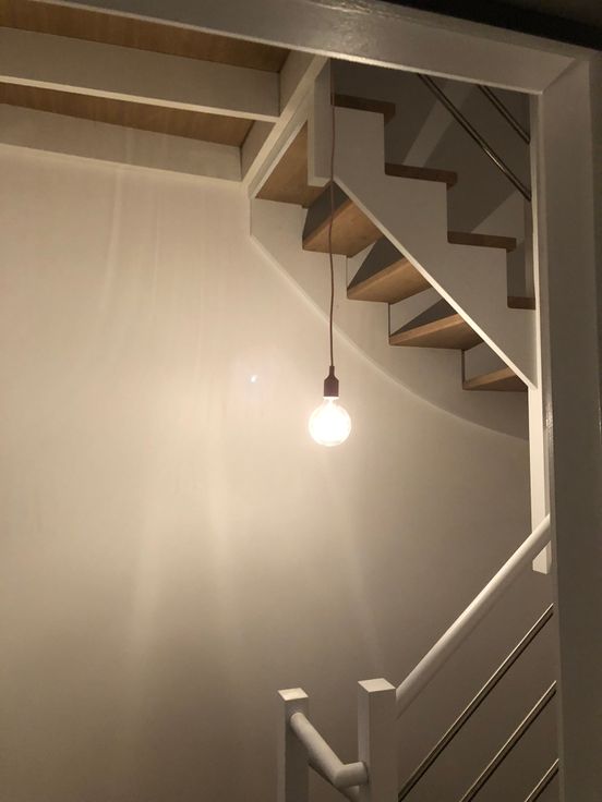 La partie principale de l'appartement est située au rez-de-chaussée et l'appartement s'étend au niveau de l'annexe sur 2 étages de celle-ci. Cette configuration donne une impression de "maison" très agréable.