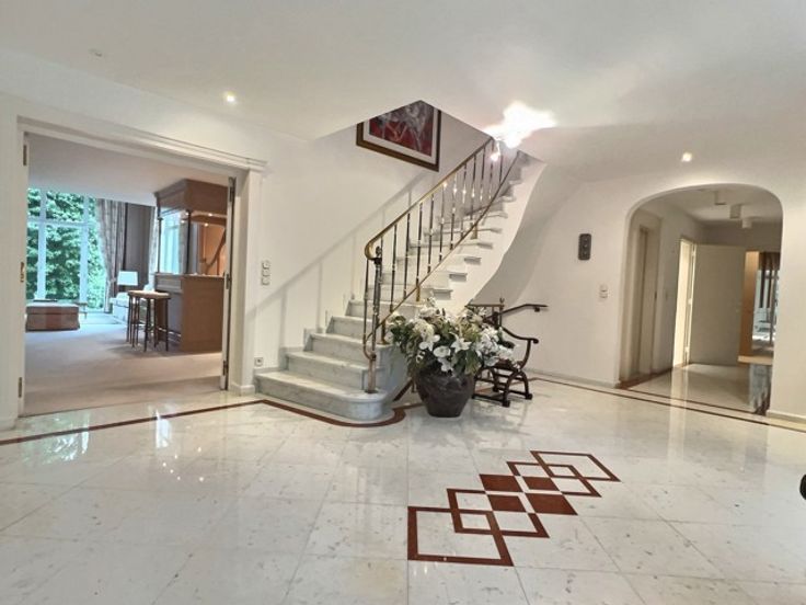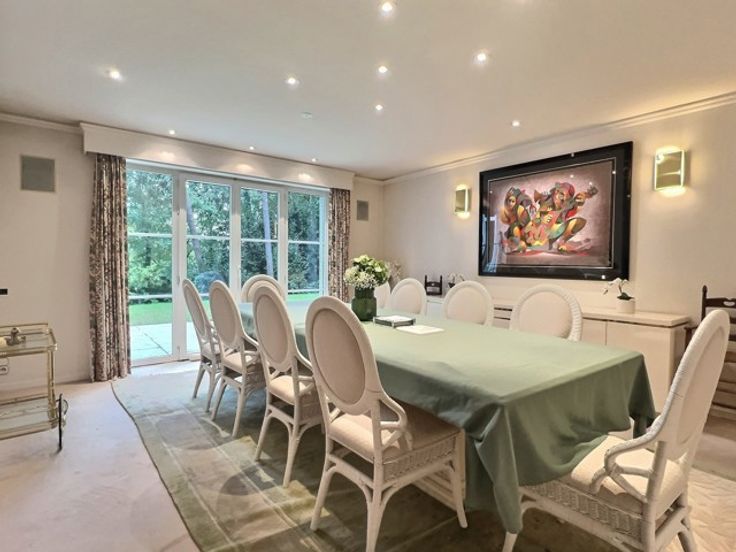 Braine l'Alleud - 7 Fontaines Ruime villa om bij te werken op 50 hectare prachtig bebost terrein. In de gewilde wijk 7 Fontaines, niet ver van het Franse lyceum, prachtig pand van ca. 1100m2 woonoppervlak met lift op een privéterrein van 50 are. De villa biedt: Kelder: Een thuisbioscoop, een garage voor 3 auto's, een berging en een technische kelder. - Begane grond: Een inkomhal, mooie ontvangstruimten met open haard, een eetkamer, een ruime volledig uitgeruste keuken, een kantoor, een wellnessruimte met zijn binnenzwembad, jacuzzi, sauna, douche en vestiaire. een tv-lounge. Aparte conciërgedienst. - Boven: de master suite met zijn kasten en eigen badkamer, 5 andere suites met elk een eigen doucheruimte, een 2e studeerkamer op de mezzanine. Er moet nog het een en ander worden bijgewerkt. Gewoon wachten om ontdekt te worden!
