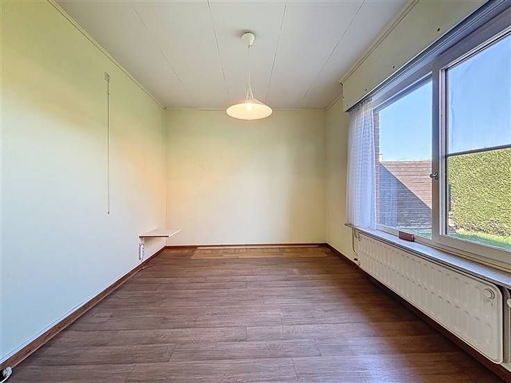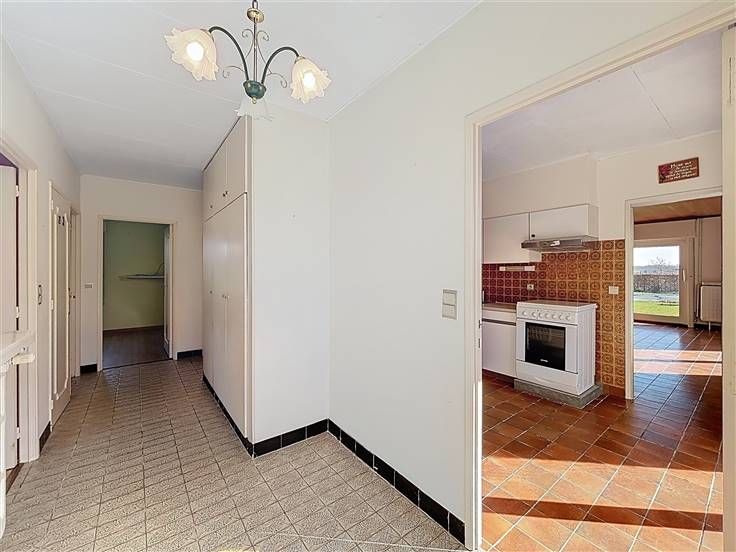 Alleenstaande woning/bungalow met ruimte tuin (± 427m²) en garage De woning omvat een inkomhal, lichtrijke leefruimte, aparte keuken, berging, 3 slaapkamers, badkamer, apart toilet en inpandige garage. De ruime zolder is bereikbaar via de garage en biedt mogelijkheid om extra kamers te creëren. Troeven: - Centrale ligging - Geen renovatieplicht - Geïsoleerd dak/zolder - Regenput
