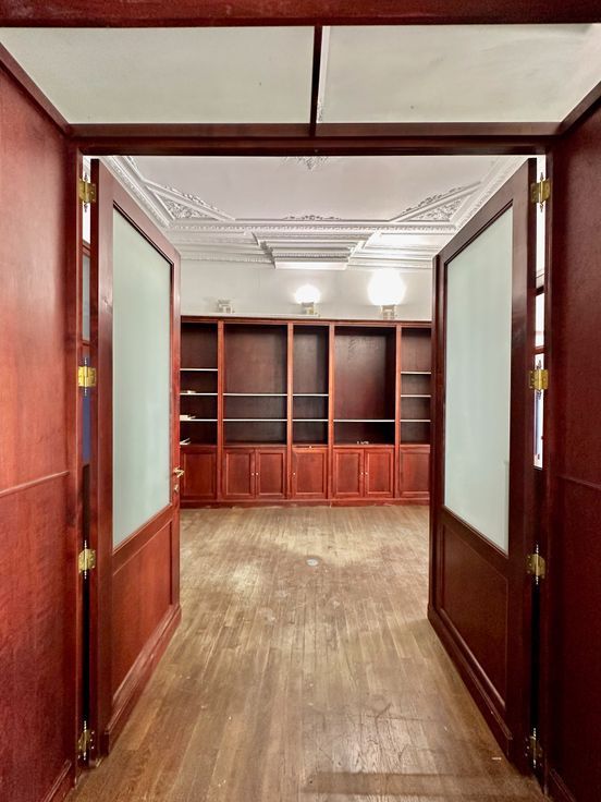 De praktijk omvat twee aparte bureauruimtes, voorzien van prachtige ingemaakte kasten die zorgen voor een stijlvolle en functionele werkplek. Dankzij de hoge plafonds en authentieke elementen straalt deze ruimte klasse en professionaliteit uit.