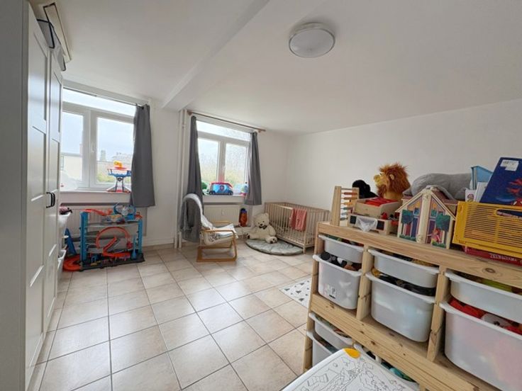 1er étage: Hall d'entrée - Living avec cuisine équipée - Hall de nuit - WC Individuel - 2 grandes chambres - SDD -
