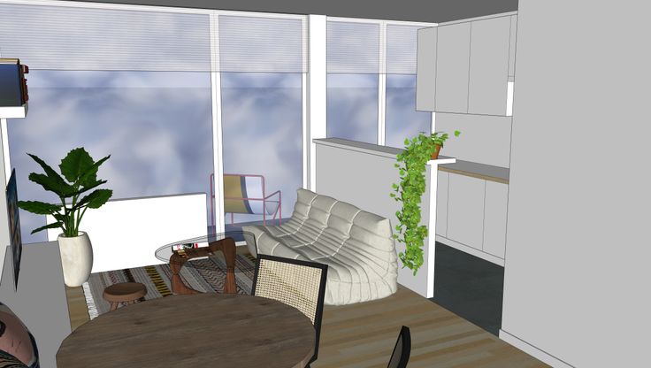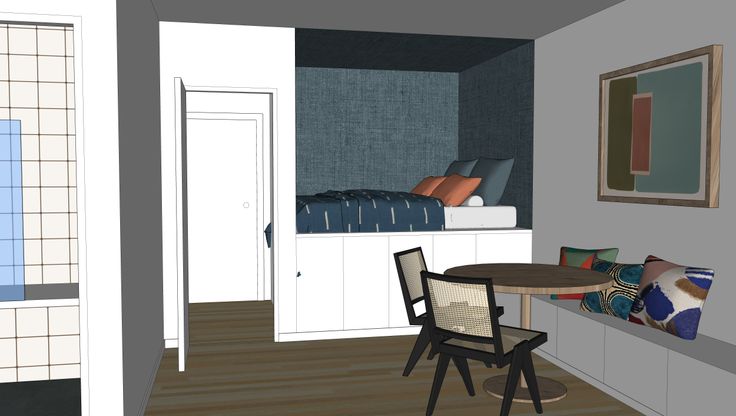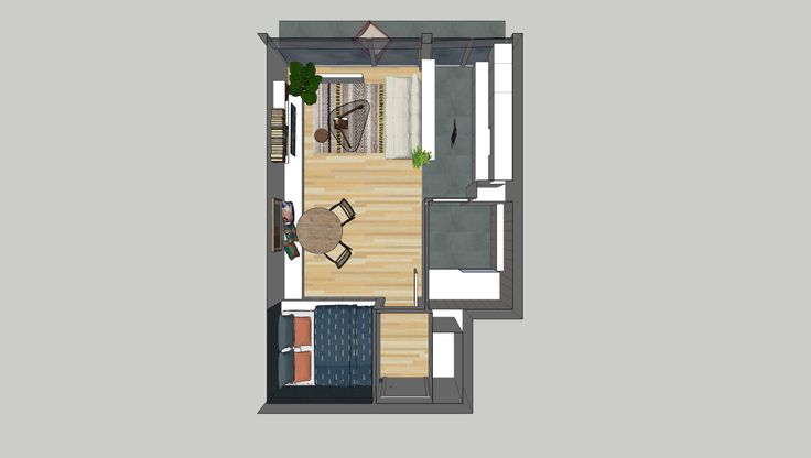 Le studio n'est pas meublé - proposition d'aménagement sur les vues 3D.