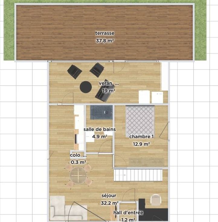 S'étendant sur une surface habitable de 98 m², l'intérieur propose une ambiance chaleureuse et conviviale. Le salon, baigné de lumière naturelle, s'ouvre sur une cuisine moderne, parfaitement équipée pour les amateurs de gastronomie.