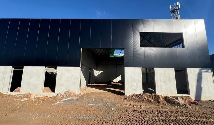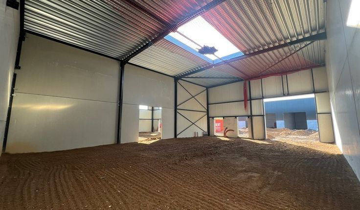 Specificaties: 1 automatische sectionale poort per unit 4m x 4m, 6m vrije hoogte, polybetonvloer, geïsoleerd steeldeck dak met lichtstraat, afvoer sanitair, 32A, septische put 2000l en regenwaterput 3000l per unit, fietsenstalling met 2 laadpunten, 1 parking per unit met wachtbuis voor laadinfrastructuur