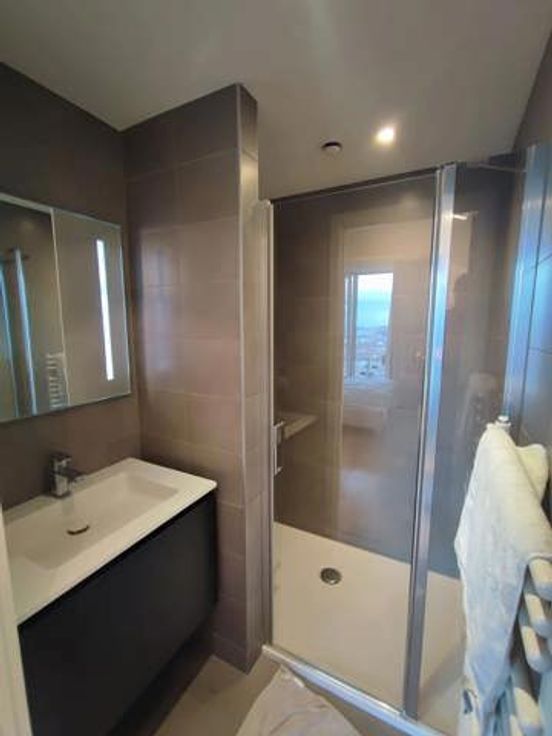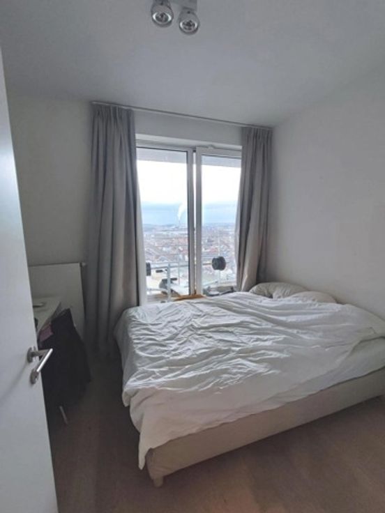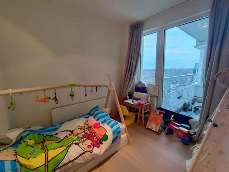 MyImmo Ganshoren presenteert dit prachtige, lichte appartement, zonder inkijk, gelegen op de 23e verdieping van een prachtig, zeer rustig en veilig condominium met een oppervlakte van +/- 95m², inclusief videofoon, conciërgeservice, badge, receptie en bewaker.