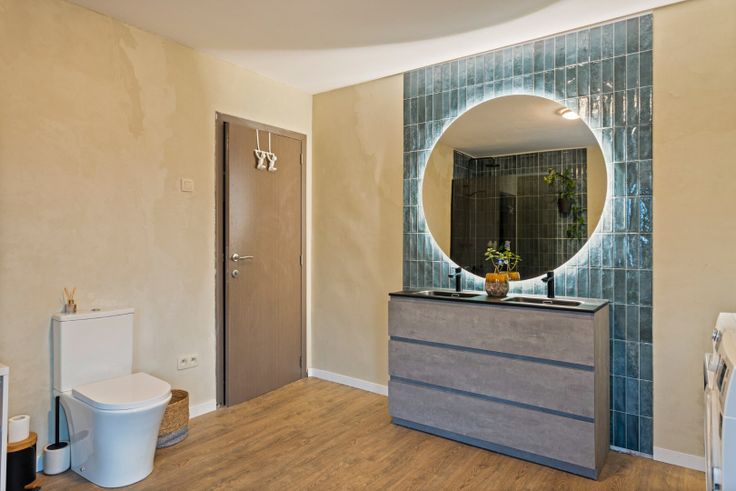 We betreden de woning via de inkomhal welke toegang geeft tot de gezellige leefruimte van 27 m². Vervolgens betreden we de vernieuwde keuken welke uitgerust is met een koelkast, diepvries, combi-oven, inductiekookplaat, afzuigkap en vaatwasser. Achteraan de woning bevindt zich nog een ruime, lichtrijke eetkamer van 23 m² welke in te richten is naar keuze. Ook de technische ruimte/ berging bevindt zich op het gelijkvloers.