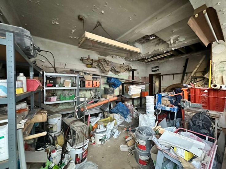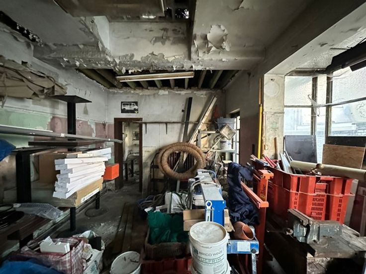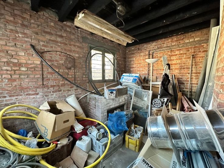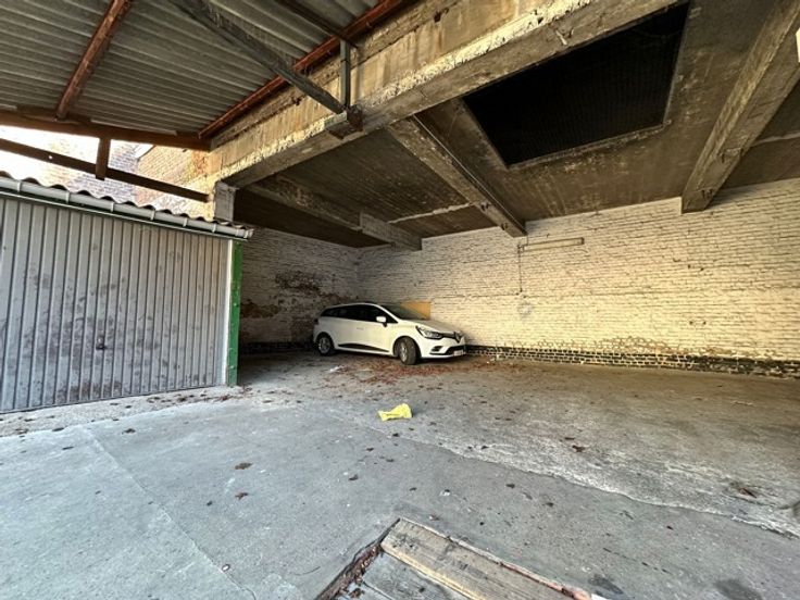 Prachtige te renoveren werkplaats met o.a.; meerdere ruimtes voor een totaal van +/-60m2 en een hangar die momenteel dienstdoet als parkeerplaats voor 4 auto's.