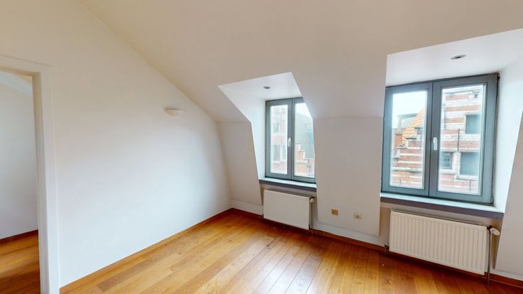 Te midden van het historisch stadcentrum, in de schaduw van het stadhuis en de Kathedraal, bevindt zich dit instapklare triplex appartement. Eerste verdiep: Keuken met eetkamer. Tweede verdiep: leefruimte. Op de derde verdieping bevindt zich een slaapkamer met volledig ingerichte badkamer voorzien van een douche in ligbad en wastafel en toilet. Het betreft een triplex appartement op een uiterst gunstige en centrale locatie in de stad. Gemeenschappelijke kosten van 150 zijn inclusief water