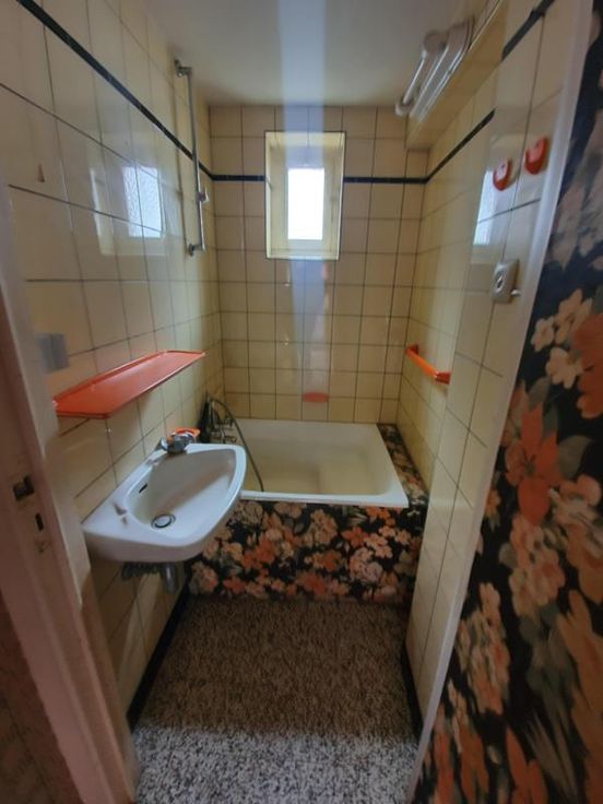 Se composant comme suit : Sous-sol : cave saine (+/- 10 m²) Rez : hall (+/- 5 m²), salon (+/- 15 m²), salle de bains (+/- 2,5 m²), cuisine non équipée (+/- 8 m²), living (+/- 13 m²), buanderie (+/- 12 m²), wc extérieur, petite véranda, garage (+/- 17 m²) Etage : palier, 2 chambres (+/- 11 et 12 m²)