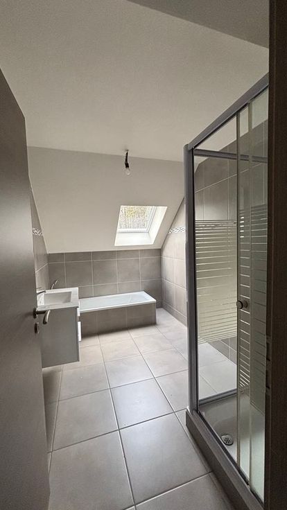 Bièvre, rez-de-chaussée, vaste appartement, neuf, tout confort comprenant hall d'entrée, cuisine super équipée, séjour, buanderie, salle de bain avec baignoire, douche, lavabo, wc, 2 chambres + 1 bureau. Cave et parking.