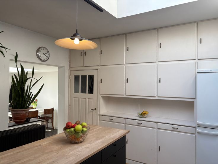 De keuken is uitgerust met ingebouwde kasten, vaatwasmachine, oven, koelkast, kookeiland met dampkap en geeft toegang tot de bijkeuken/berging.