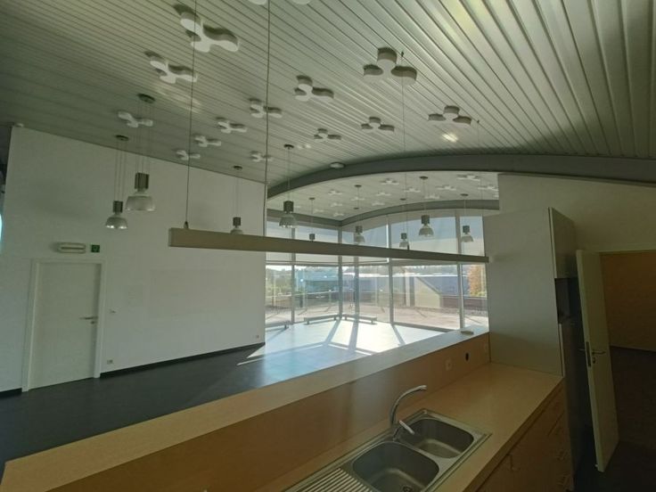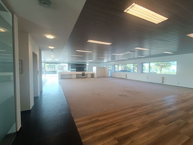 Dit bedrijfsgebouw bestaat uit 1.238 m² kantoorruimte, verdeeld over het gelijkvloers, de eerste en tweede verdieping. Op het gelijkvloers zijn er ramen over de hele muur, wat zorgt voor overvloedig natuurlijk licht en de mogelijkheid biedt om de ruimte als toonzaal in te richten. De tweede verdieping is momenteel ingericht als een grote, lichtrijke eetruimte met keuken en een ruim, aangenaam terras. Aan de linkerzijde van het gebouw bevindt zich een magazijn van circa 398 m², met aparte toegang via een sectionale poort. Het magazijn is in zeer goede staat en voorzien van alle noodzakelijke faciliteiten voor opslag en logistiek.