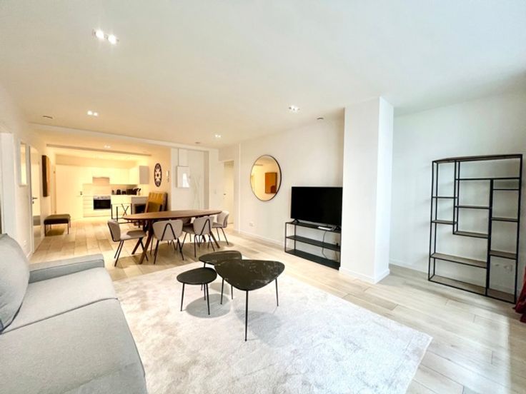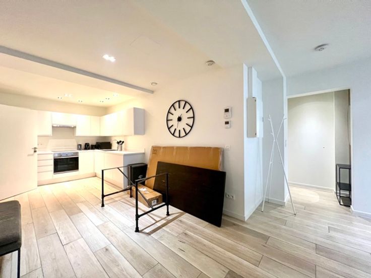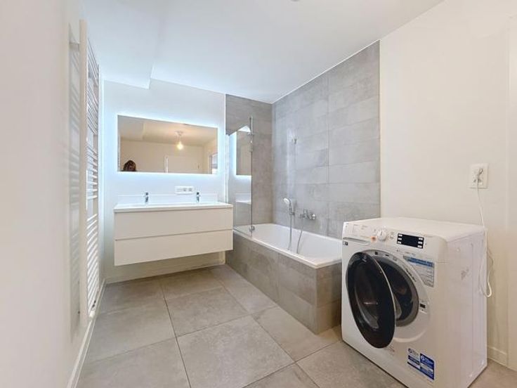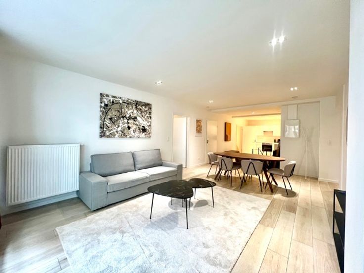 Bathim&CO offers you a magnificent fully renovated and furnished apartment of +- 88m² in the immediate vicinity of Madou and Arts-Loi. It is composed as follows: A vast entrance hall, a large bright living room giving access to a beautiful private terrace, a super-equipped kitchen, a beautiful bedroom with a shower room, a separate toilet, a laundry area, a private cellar. Charges: €140 for communal areas, heating and hot water. Visit soon with Sascha - Bathim&CO!