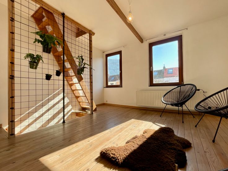 - Eerste verdieping : Ruime en lichte kamer, in te richten naar eigen wens.