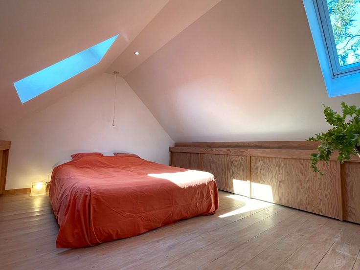 - Zolderdverdieping :Gezellige slaapkamer met ingebouwde kasten langs