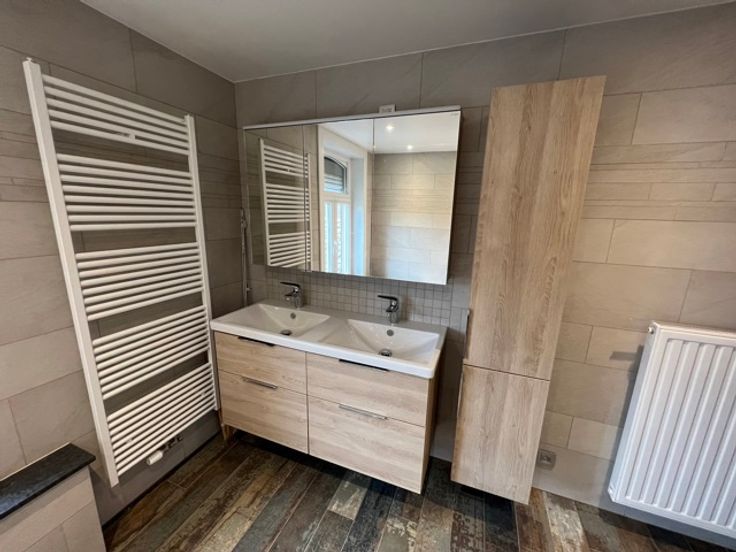 Jurbise, belle maison entièrement rénovée avec gout, comprenant un hall, living, cuisine équipée, véranda, buanderie, jardin, garage, 4 chambres, 2 belles salle de bains avec baignoire et douche, dont une salle de douche , 2wc. Tout est neuf! libre le 1er mars 25. Infos: 0497/720702