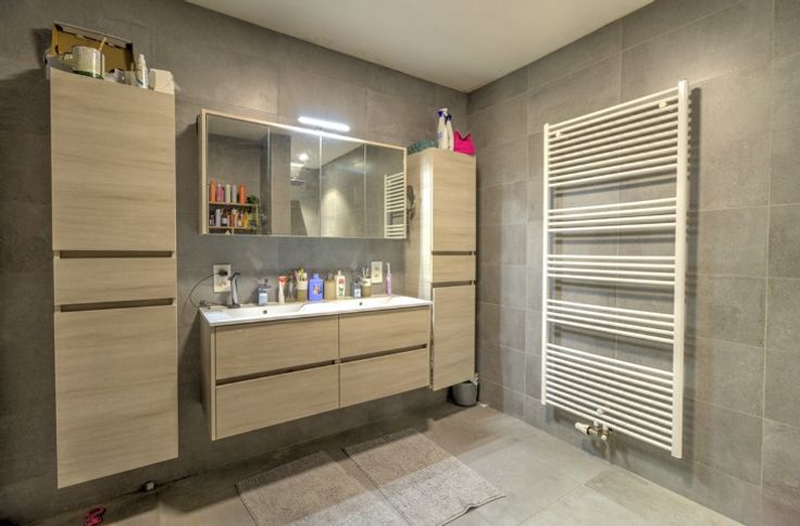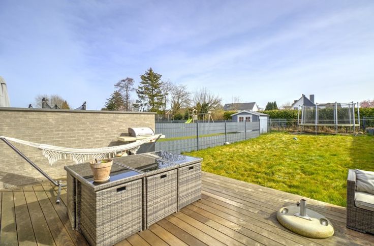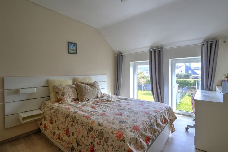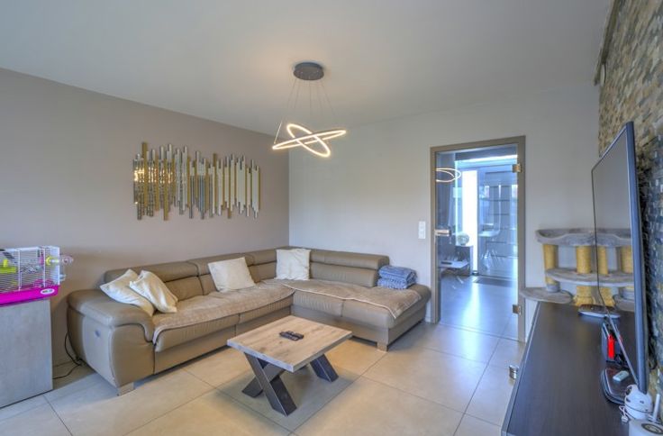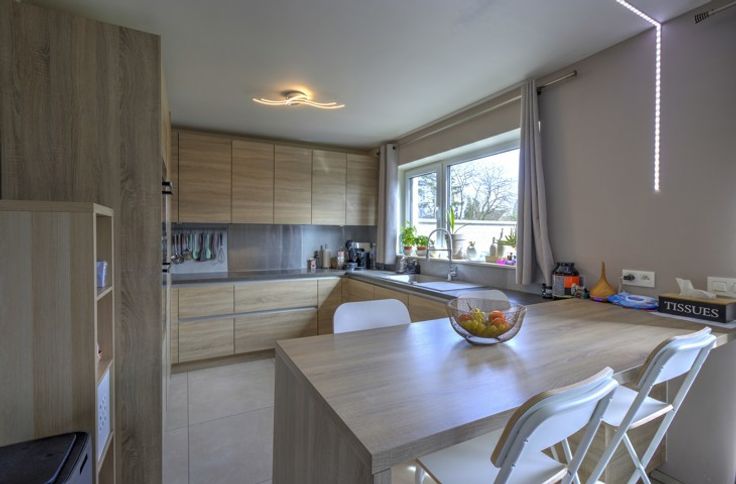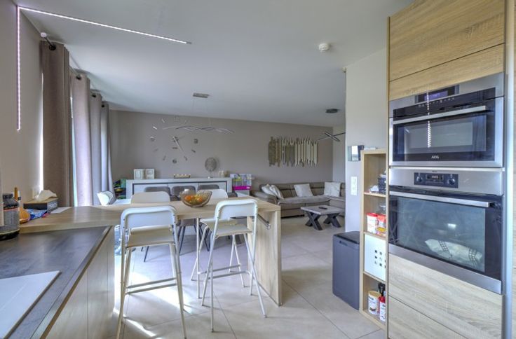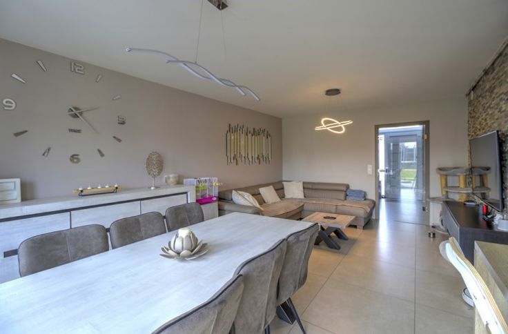 SITUEE AU CALME AU SEIN D'UN LOTISSEMENT, BELLE MAISON RECENTE (2019) COMPRENANT TROIS CHAMBRES, DEUX EMPLACEMENTS DE PARKING, UN GARAGE, UNE TERRASSE ET UN JARDIN - COMPOSITION / -Rez-de-chaussée : un hall d'entrée de 9m², une toilette indépendante avec évier, un séjour de 24m², une cuisine équipée de 10m² (évier, taques à induction, hotte, four, micro-ondes frigo, congélateur, lave-vaisselle), un garage de 18m² avec porte sectionnelle électrique - 1er étage : un hall de nuit 6.5m², une toilette indépendante avec évier, trois chambres de 13m² - 11m² - 10m² dont une avec dressing de 5m², une salle de douche de 8m² (double vasque, douche italienne) - 2ème étage (accessible par trappe) : un grenier de rangement de 26m² - DIVERS : toiture en ordre, châssis PVC triple vitrage, électricité CONFORME jusqu'en 2043, chauffage au sol rez + étage (chaudière à condensation au gaz), 10 panneaux photovoltaïques, système d'alarme, vidéophone et parlophone, système d'aspirateur centralisé, citerne d'eau de pluie (10.000l), ventilation double flux, proximité immédiate des commodités, description non-contractuelle communiquée à titre informatif.