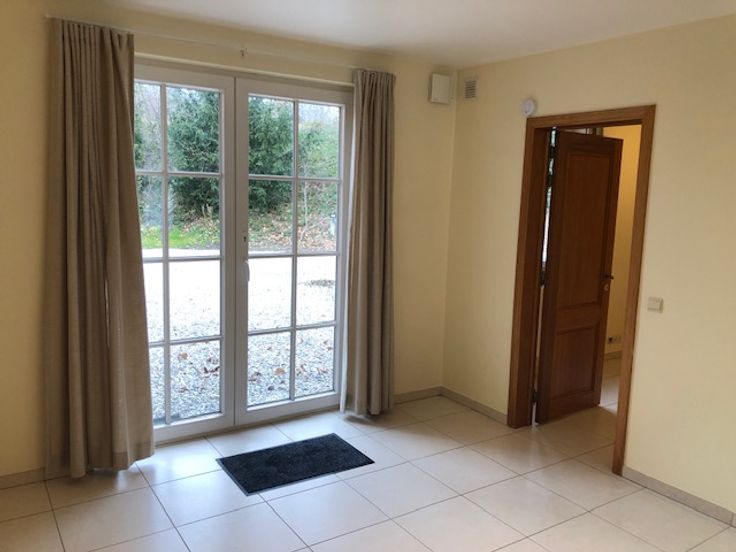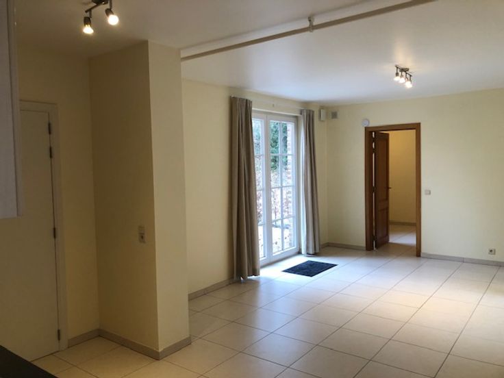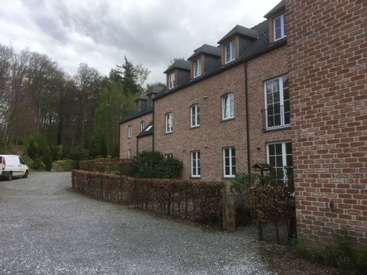 App. dans cadre exceptionnel, prox. LLN et E411, calme, chambre spacieuse, living/sàm/cuisine américaine, sdb, local commun vélos/poubelles, parking privé.