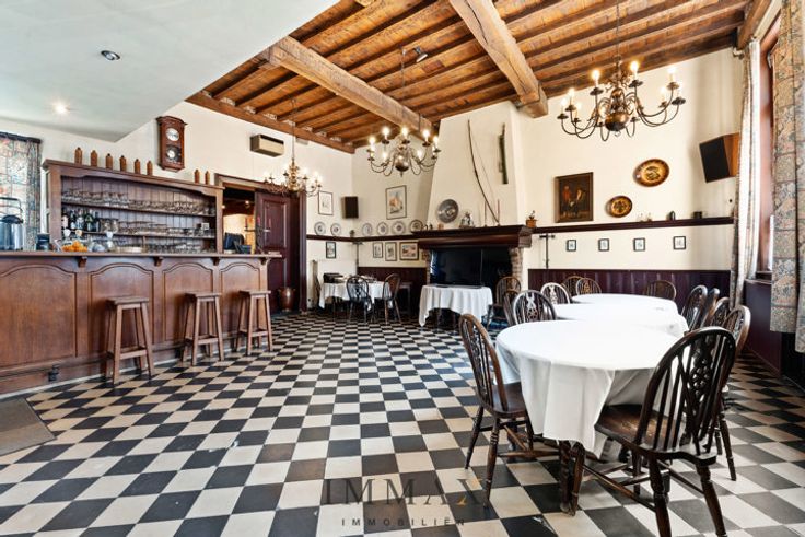 Horecazaak: volledig ingerichte keuken - restaurant met bar - uitbreiding mogelijk met extra ruimtes op het gelijkvloers - ruim zonnig terras