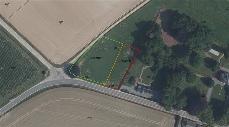 EGHEZEE (LONGCHAMPS): Mooie bouwkavel van 18 are (21 m voorgevel) dicht bij de E411 en alle voorzieningen, uitzicht over het platteland
