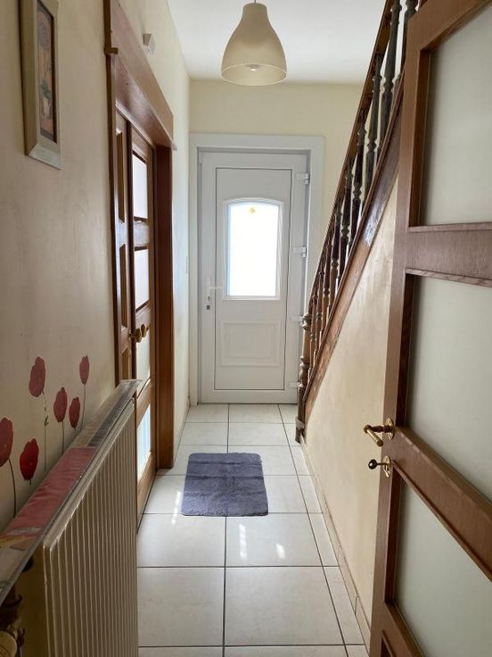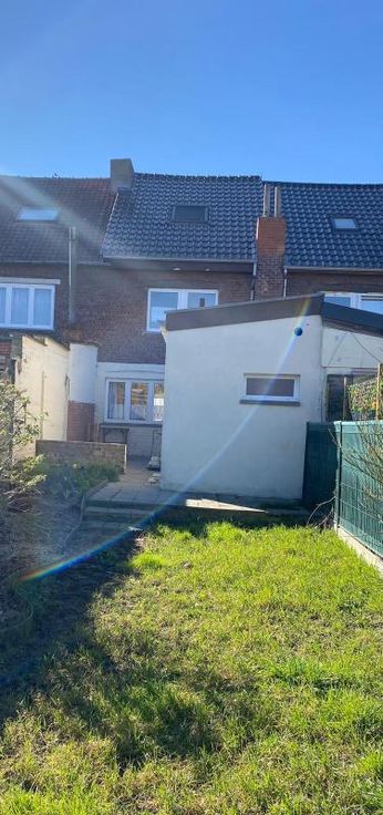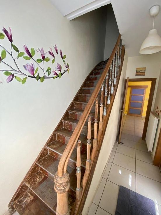 Maison 2 façades - sur 2a 20ca - comprenant : -RDC : hall d’entrée, living, cuisine, toilettes séparées, salle de bains (avec lavabo, baignoire, douche, raccordements MàL) -1er étage : hall de nuit avec placard, 3 chambres -2ème étage : grenier à aménager (poss 2 chambres) – toiture isolée -sous-sol : 3 caves -chauffage central au gaz -Extérieur : jardin, terrasse