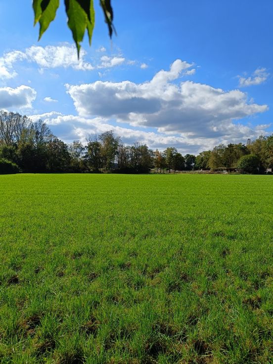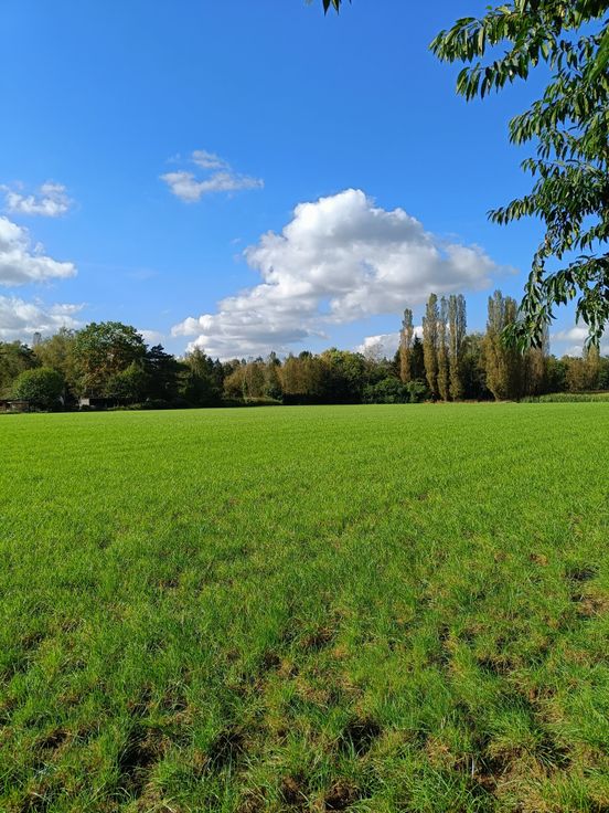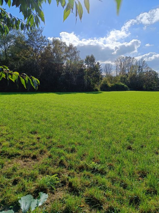 Achteraan prachtig zicht over weilanden (kan nooit bebouwd worden).