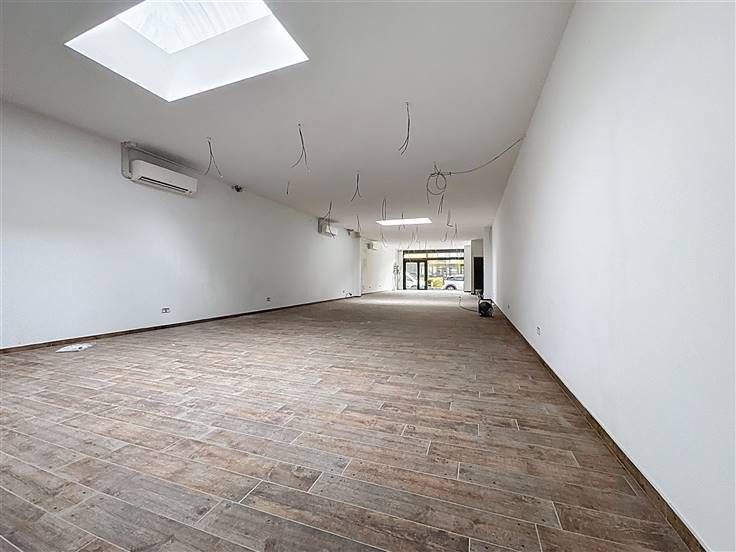 Rez-de-chaussée : Grand local commercial de 100 m², un WC séparé, pièce multi-fonctionnelle comprenant cuisine, salle de douche et WC séparé, terrasse
