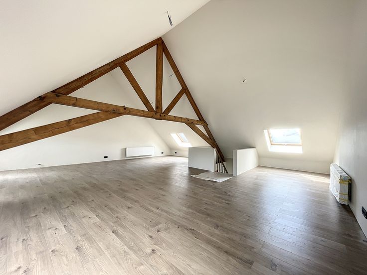 Dakverdieping: momenteel één zeer grote ruimte dewelke kan worden ingedeeld in drie ruime slaapkamers.