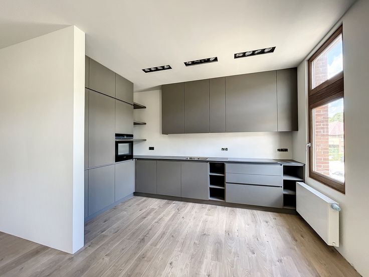 1e verdieping: grote living, slaapkamer (of bureau), volledig ingerichte keuken, badkamer met inloopdouche en apart toilet.