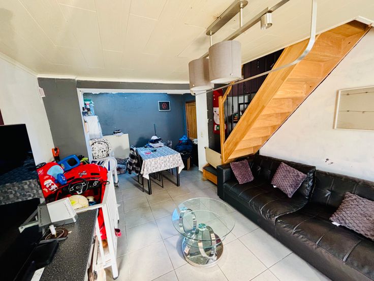 Au rez-de-chaussée, vous découvrirez un espace de vie lumineux composé d’un salon et d’une salle à manger, ainsi qu’une cuisine semi-équipée. Une salle de bain complète ce niveau.