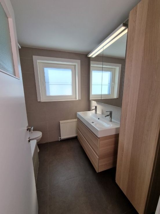 1er étage : hall de nuit, 3 chambres à coucher dont 1 avec lavabo, salle de bain (bain, lavabo, WC).