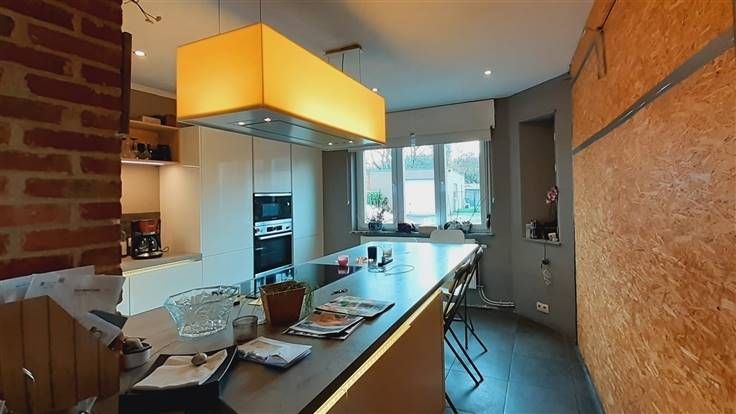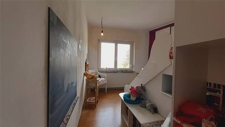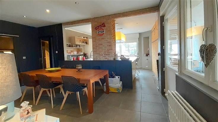 Sorry er is geen nederlandse vertaling beschikbaar. Confortable et très fonctionnelle maison 3 façades comportant 4 chambres (+1) pour 172m² habitables. Pouvant convenir comme "MAISON KANGOUROU". Elle jouit de 16 panneaux photovoltaïques (de 2017) et d’un "sas d’entrée" côté jardin (à ossature bois) ce qui la rend très économique en énergie. Largeur du terrain à front de voirie: +/-20 mètres. Composition: Rez-de-ch.: hall; séjour ouvert sur la cuisine (31 m² au total; cuisine hyper-équipée: îlot central avec plaque à induction et hotte filtrante, meubles hauts et bas, évier 1 bac ½, lave-vaisselle, four, four M-O, frigo combiné); salon TV; chambre avec SdB communicante (baignoire et lavabo); wc. Au 1er étage: palier; grand dressing (nombreux et spacieux placards); 3 chambres avec placards incorporés (dont une "suite parentale" de 20m²); SdD (wc et lavabo). Au 2ème étage: grand grenier aménagé en espace de détente et dressing. Au sous-sol: buanderie; débarras; grand local à usage d’atelier et de chaufferie; 2ème atelier. À l’extérieur: local attenant de +/-20 m² (qui pourrait être reconverti en garage); terrasse de +/-15m² en bois exotique; entrée carrossable; dégagement (empierré); jardin. Quelques finitions sont à parfaire, mais maison très saine (avec une bonne isolation thermique) jouissant de châssis PVC DV récents (avec volets) et d’un bon potentiel. Chauffage central mazout (citerne de 1.200 L). 2 boilers électriques de 150L. Peb D.