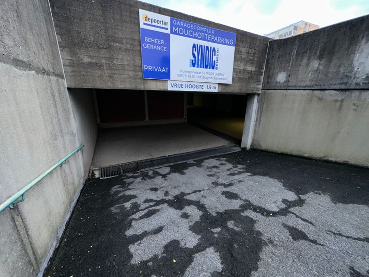 Garagebox onder René Mouchotteplein te koop. Vlot bereikbaar via gemeenschappelijke schuifpoort, en makkelijk te bereiken via brede gangen en centrale ligging in het complex