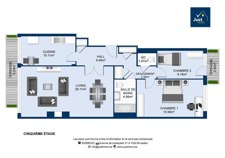 Avenue Henri Liebrecht, dans un quartier calme et aéré, à proximité de toutes les facilités et situé au 5ème étage sur 6 (avec ascenseur), très bel appartement de 90m² composé comme suit : Un hall d'entrée avec vestiaire, un spacieux et lumineux séjour donnant accès à la terrasse offrant une superbe vue sur le bois, une cuisine d'époque équipée et aménagée. En façade arrière, un hall de nuit desservant deux chambres (15m² et 9m²) dont une avec terrasse, une salle de bain avec espace buanderie et une toilette séparée. Une cave. Cet appartement vous séduira par sa localisation, son agencement et . Plus d'informations : 02/268.03.33 ou 0489/87.67.84 - www.justimmo.be