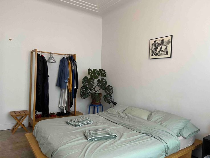 Naast de leefruimte ligt de ruime slaapkamer op authentieke plankenvloer met een grote dressing kast.