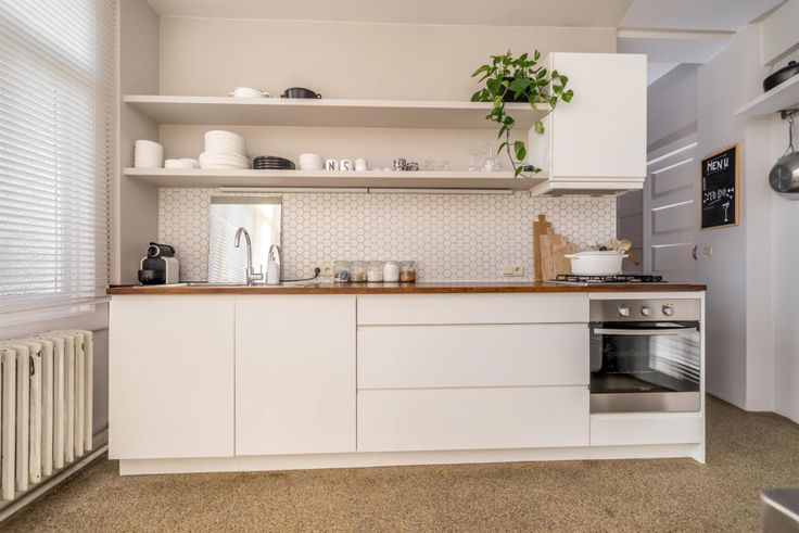 Verderop kom je in de grote, recent gerenoveerde keuken. Hier schijnt de zon heerlijk in de voormiddag. Naast de keuken nog een handige berging/washok met ingemaakte kasten.