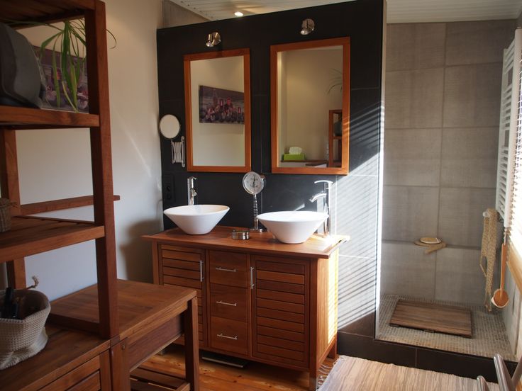 A l’extérieur : 2 terrasses en bois bien orientées (dont une grande couverte) et un lopin de terre. Accès privatisé à l’arrière via porte de garage.