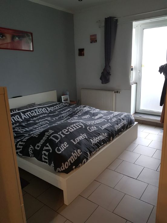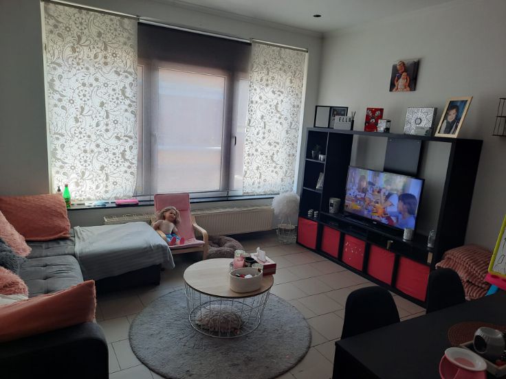 Appartement 2 chambres, hall d'entrée, cuisine équipée, salon, buanderie, salle de bain avec meuble + une cave. Chauffage central, double vitrage compteurs eau / électricité / gaz séparés. Pas de charge commune GSM: 0494/258.145