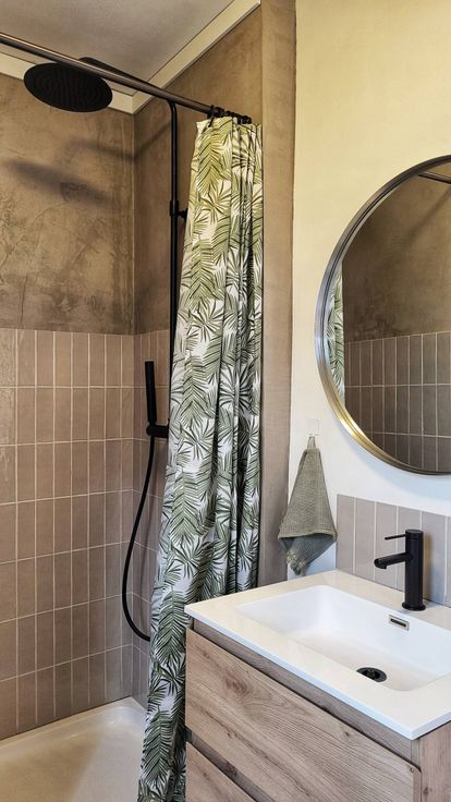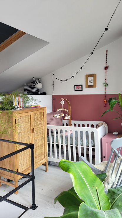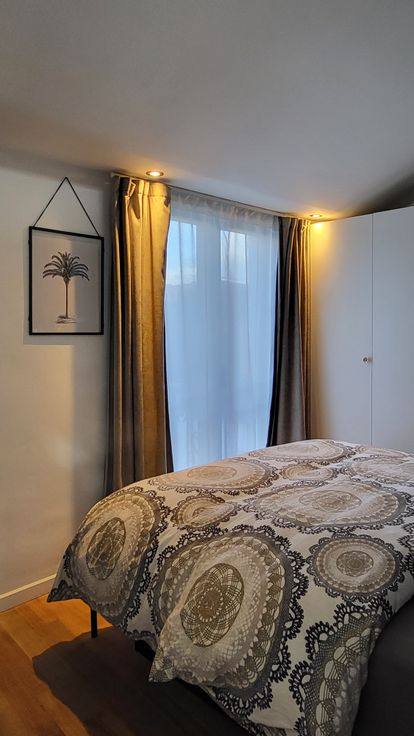 +3: slaapkamer met ensuite badkamer (toilet, dubbele wastafel en inloopdouche) en enkele treden hoger een extra ruimte / nu baby slaapkamer en toegang tot het zuidgerichte dakterras met de nodige privacy.