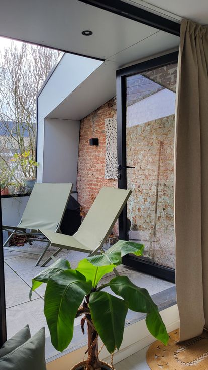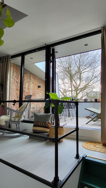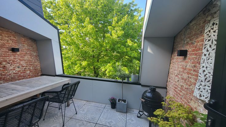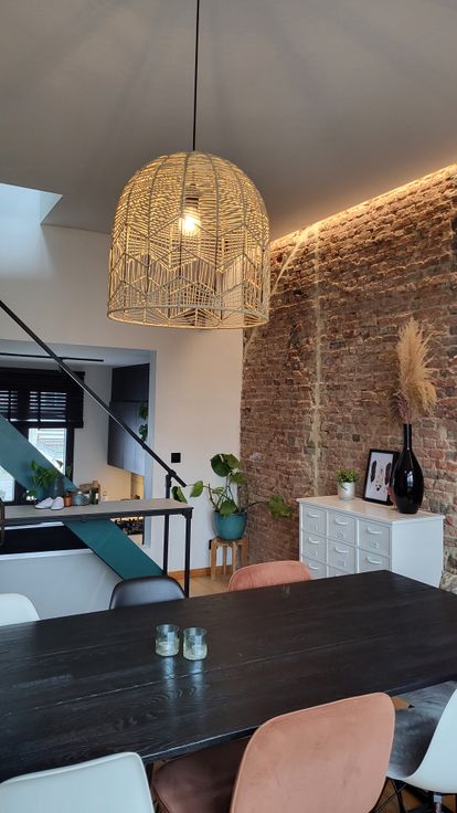 Deze instapklare stadswoning met dakterras, aparte verhuurunit en inpandige garage werd in 2021 volledig gerenoveerd. De originele splitlevel indeling van het hoofdgebouw werd in ere hersteld door alles terug open te werken zodat het binnen aangenaam ruim en licht is. Het achtergelegen appartementje werd in een gezellige airbnb getransformeerd welke met succes verhuurd wordt: https://www.airbnb.be/rooms/720971896352758452, maar kan indien gewenst ook een vaste huurder krijgen (aparte tellers gas en elektriciteit).
