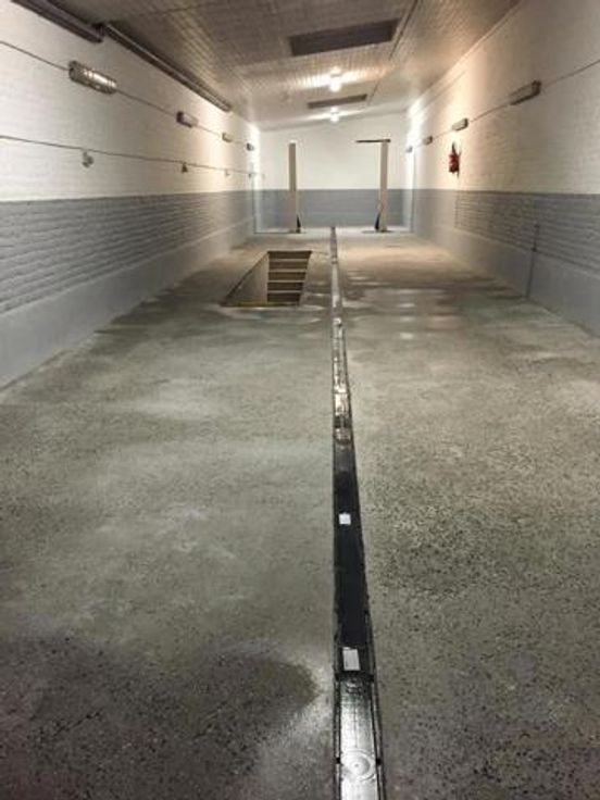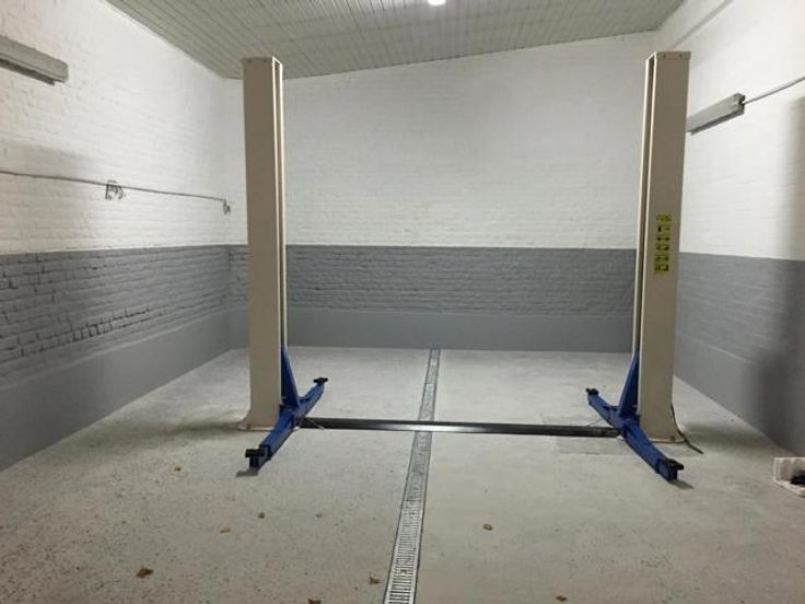 Het is samengesteld met een drive-in ingang van 40m2 (10 x 4 m) die leidt naar een oppervlakte van 195m2 (34,5 x 5,6 m) met een werkput van 12m2 (7,5 x 1,6 m), een kantoor van 5m2 en ruimte sanitair. Sectionale poort van 3,3 m.