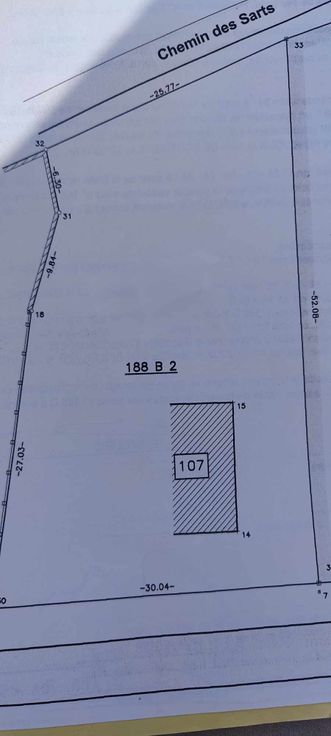 Terrain constructible d'un peu plus de 16 ares. Belle situation entre chemin d'Oultre Heure et chemin du Sarts.