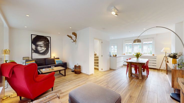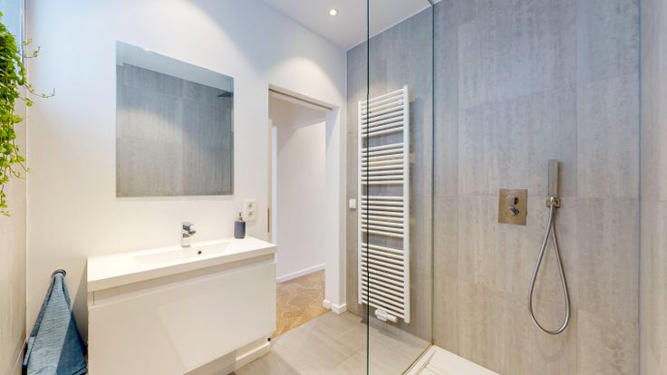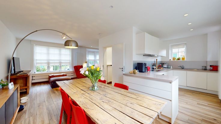 Idéalement située, cette maison entièrement rénovée en 2018 développe une surface totale de +/-160m2 qui distribue un espace convivial ouvert au rez de chaussée comprenant living, salle à manger et cuisine américaine disposé en U.