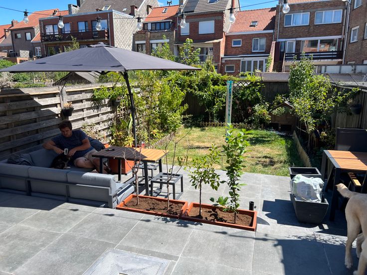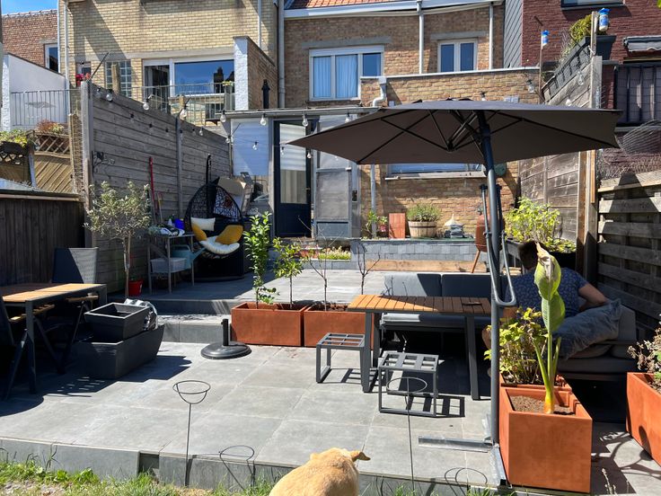 - ingerichte stadstuin met een dubbel terras. Zuid-oost gericht.