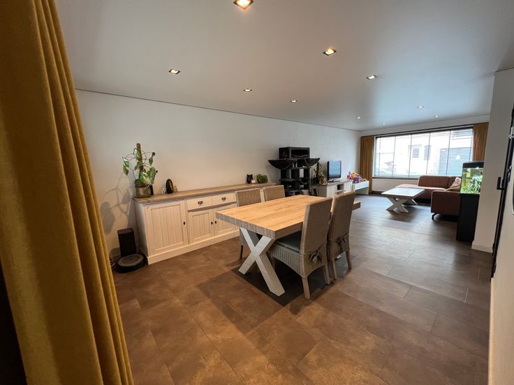 - Ruime en lichtrijke living met spanplafond en (dimbare) inbouwspots.