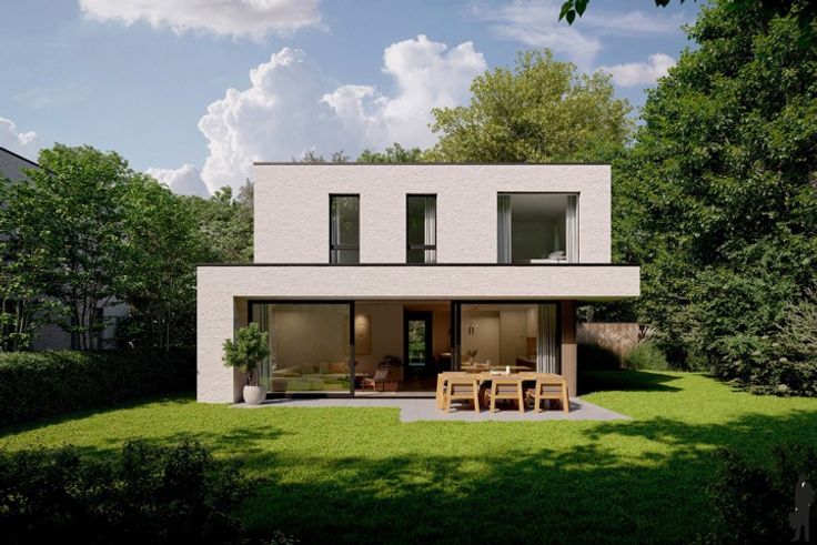 Collectief villadomein bestaande uit 5 moderne nieuwbouw BENvilla’s  (6% B.T.W. mogelijk!) met elk een eigen privatieve tuin en een dubbele inpandige garage. BEN-label = E20. De villa wordt verkocht met een VASTE prijs cfr. lastenboek.    VILLA W03 op een grond van ca. 752m².   Tuin & terras op het zuidwesten! Er wordt een volledig afgewerkte villa aangeboden, inclusief een geselecteerd pakket van verlichting, betegeling, parket, binnendeuren, sanitaire toestellen, keukenmeubilair, keukentoestellen, kasten en tuinaanleg. De koper wordt een keuze gelaten binnen het aangeboden afwerkingsbudget, wat betreft materialen, vast meubilair en toestellen. De afwerking wordt uitgevoerd door de eigen aannemers van de verkoper. De hoogwaardige afwerking is inclusief tuinaanleg en bestrating. De gelijkvloerse verdieping is voorzien van: - inkomhal met  vestiaire en gastentoilet met handenwasser - apart bureel - woonkamer (ca. 45,6m²) op parket met toegang tot het terras. - ruime eet/leefkeuken (ca.47,3m²) incl. eethoek en centraal kookeiland en achterliggende berging . - dubbele inpandige garage (ca. 36m²) Plafondhoge blokdeuren op de gelijkvloerse verdieping. Strakke trap met betontreden in L-vorm in eik bekleed De eerste verdieping  is voorzien van: - nachthal op parket met separaat nachttoilet - masterbedroom (ca. 37,8m²) op parket bestaande uit slaapkamer met dressing, mooie royale badkamer met inloopdouche, bad, dubbele lavabomeubel en toilet.  - wasplaats - nog 3 slaapkamers o