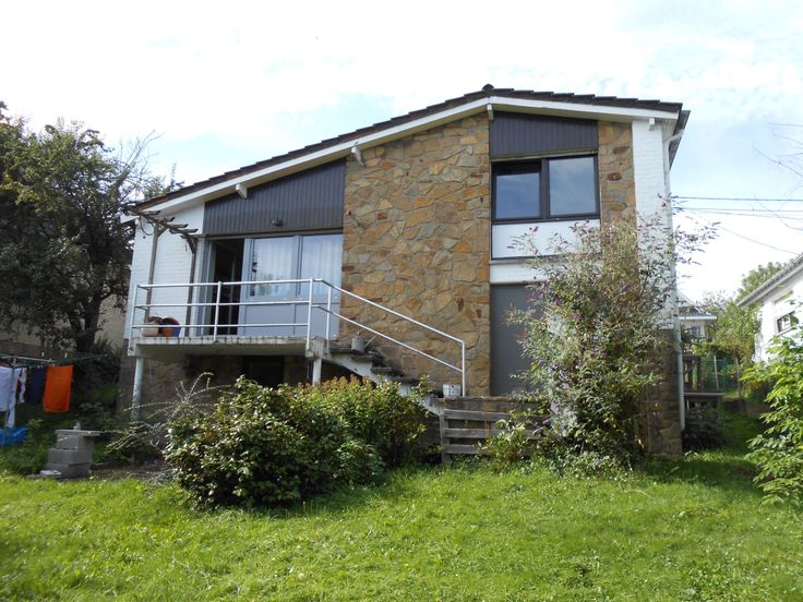 Maison 4 façades à louer 1200€/mois. Elle est constituée de 2 niveaux. La maison comprend: - Au rez-de-chaussée, un grand garage, un W.C, un hall d’entrée, un living avec cuisine équipée et une buanderie. - Au premier étage se situe la salle de bain, ainsi que les 2 chambres. Elle dispose également d’une pièce de 25 m2 (pouvant servir de bureau ou de 3eme chambre) donnant sur une terrasse arrière et d’un jardin avec pièce d’eau. Chauffe eau-panneaux solaires. Libre au 1er juin.
