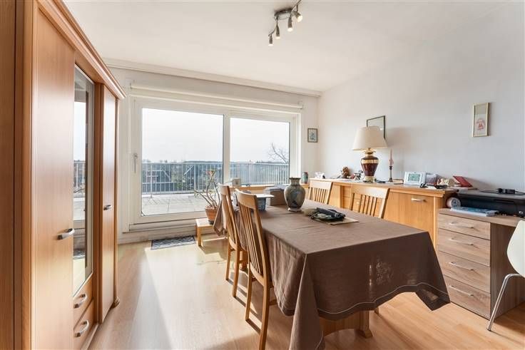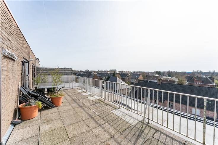Een twee-slaapkamer dakappartement op de vierde verdieping met uniek panoramisch zicht door zijn subliem groot terras. De indeling is als volgt: inkomhall, toilet, berging, badkamer met ligbad, toilet en lavabo, lichtrijke living, gesloten ingerichte keuken, twee slaapkamers waarvan één met een dressing. Het dak werd volledig vernieuwd en geïsoleerd naar de huidige normen. Zeldzaam in zijn soort. Op heden verhuurd! Mogelijkheid tot aankopen van een garage! info en bezoek 0496 10 62 97